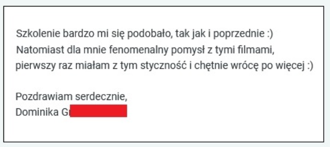 Jeszcze więcej opinii o moich szkoleniach i opinie o współpracy z Kasią